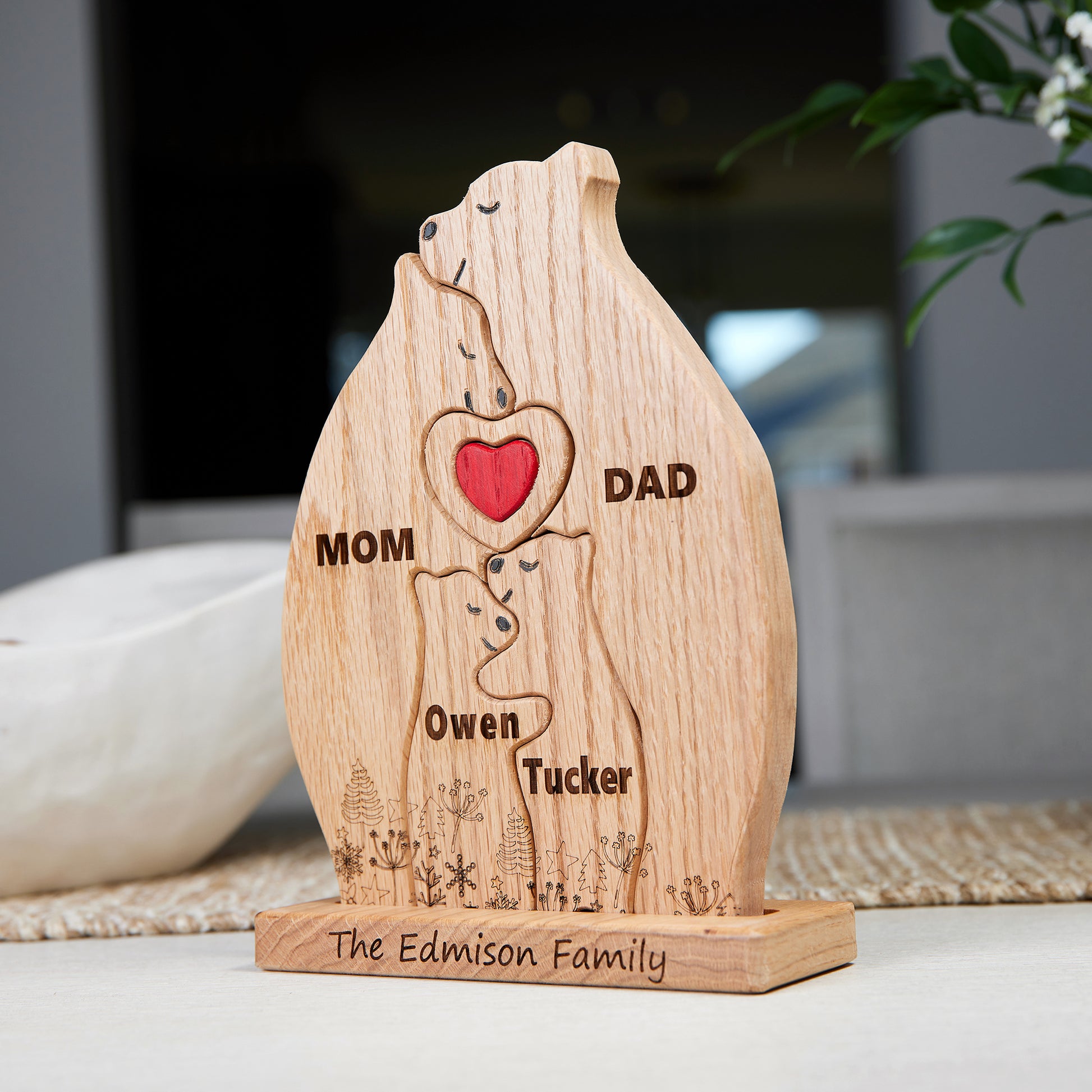 Celebrate the love and unity of your family with this beautifully crafted Bear Family with Stand. Each bear is custom-made from premium wood and engraved with your family members’ names, creating a one-of-a-kind keepsake that tells your family’s story.