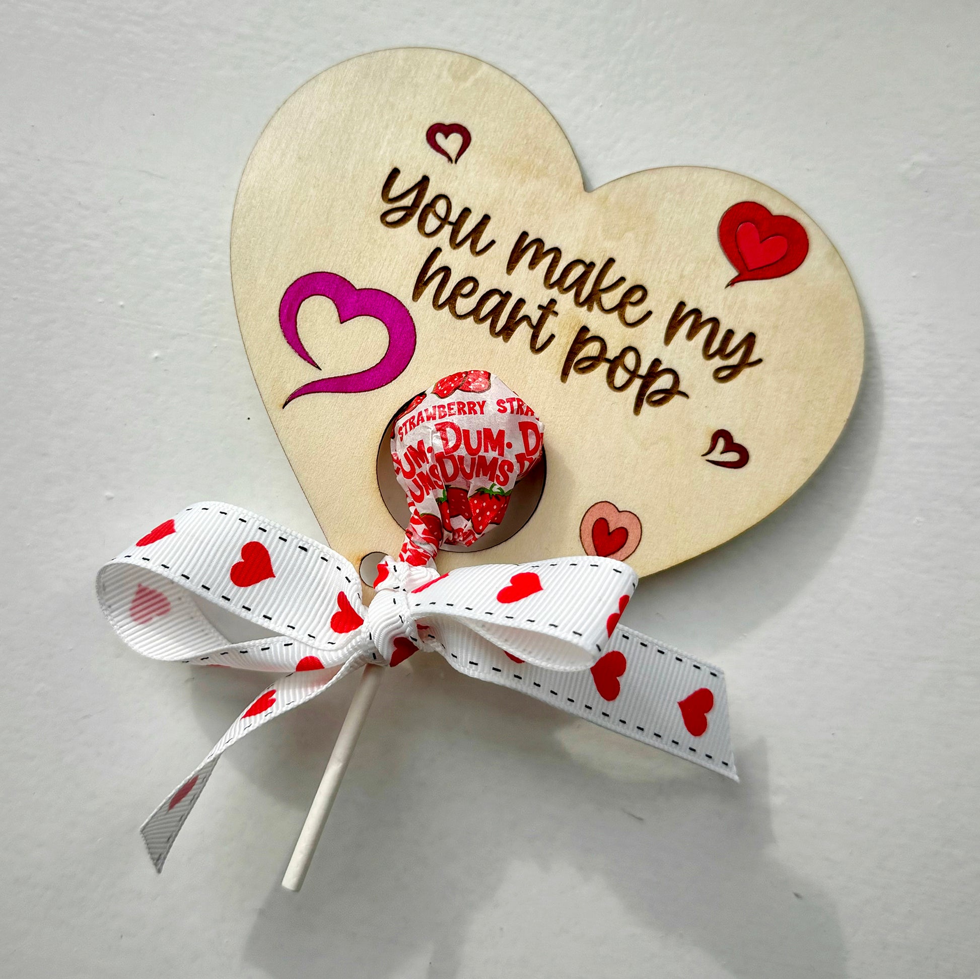 Spread some love with our Valentine lollipop holder! This adorable wooden heart-shaped holder is perfect for class valentines, party favors, and gift baskets. Laser engraved on sturdy 1/8 inch plywood.